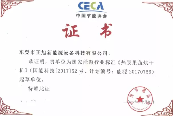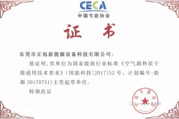 其中,正旭新能源為《空氣源熱泵糧食干燥機(jī)》、《空氣源熱泵煙葉干燥機(jī)》、《空氣源熱泵烤煙烤房技術(shù)規(guī)程》三項(xiàng)標(biāo)準(zhǔn)起草單位。此外,正旭是國(guó)家能源行業(yè)標(biāo)準(zhǔn)《空氣源熱泵干燥通用技術(shù)要求》主筆起草單位,《熱泵果蔬烘干機(jī)》、《戶用及類似用途空氣源熱泵采暖機(jī)組》等標(biāo)準(zhǔn)起草單位。
