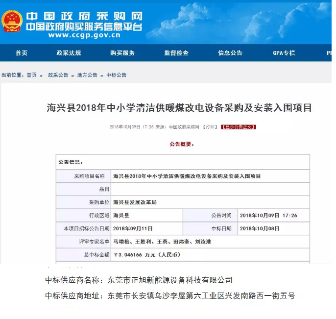 近日,中國政府采購網正式公布海興縣2018年中小學清潔供暖煤改電設備采購及安裝入圍項目中標公告,2018河北空氣源熱泵取暖行業(yè)標志性品牌——正旭空氣能以強大的品牌實力、性價比及技術優(yōu)勢等方面,進行層層篩選和綜合考慮后,強勢入圍七標段熱泵(空氣源)。