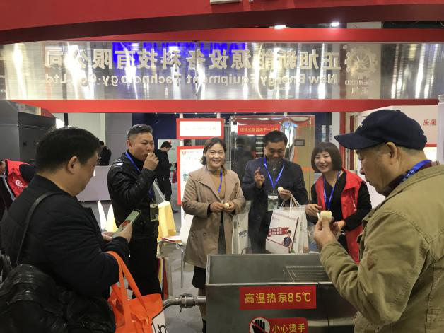 正旭復(fù)疊高溫?zé)岜美渑瘷C(jī)經(jīng)過(guò)多年研究努力,突出空氣能熱泵的技術(shù)瓶頸嗎,能夠達(dá)到最高95℃。現(xiàn)場(chǎng)高溫?zé)岜弥箅u蛋,吸引了不少客戶前來(lái)咨詢觀看,品嘗高溫?zé)岜弥蟮碾u蛋讓工程商、經(jīng)銷商們露出滿意的笑容。